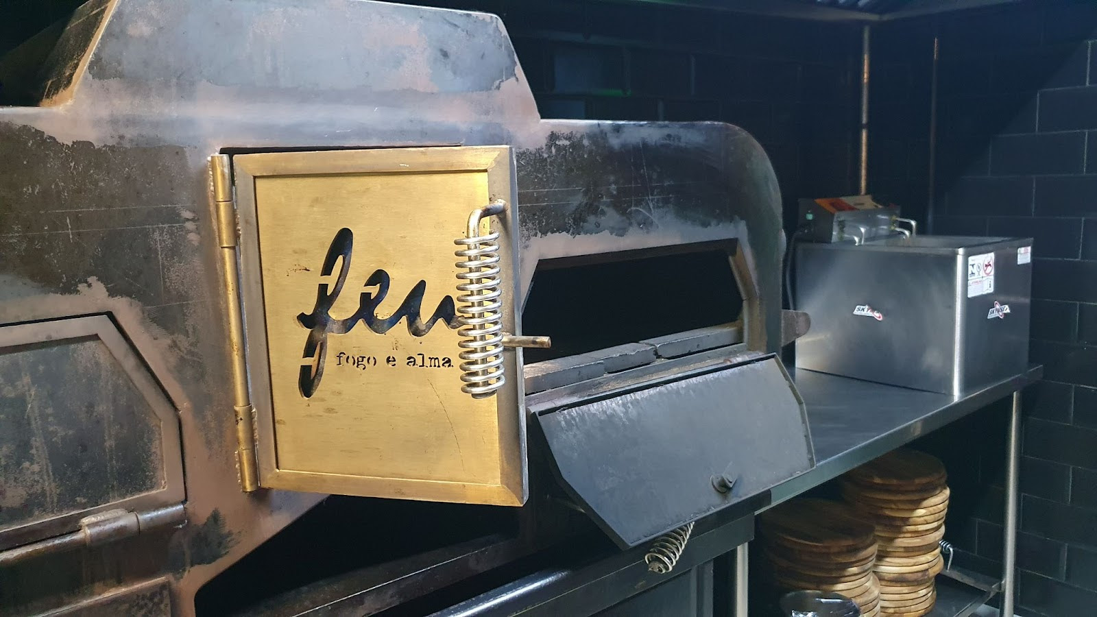 “A gente trabalha de costa, a 50 centímetros dele todo dia. É muito quente”, conta o chef, que ainda revela mais detalhes da sua principal ferramenta de trabalho. “Além dos pratos que a gente faz, que são finalizados no forno, é possível fazer pizza e focaccia também. “Todas as receitas do Feu, no mínimo uma etapa é feita no fogo”, explicou o chef.